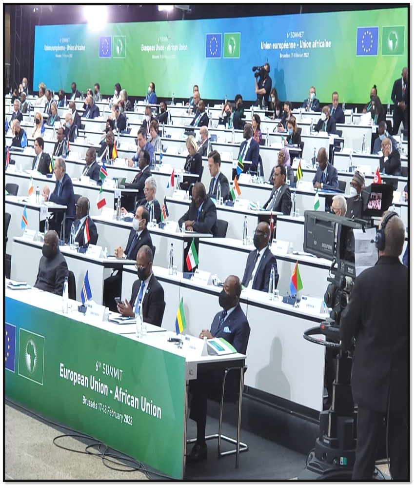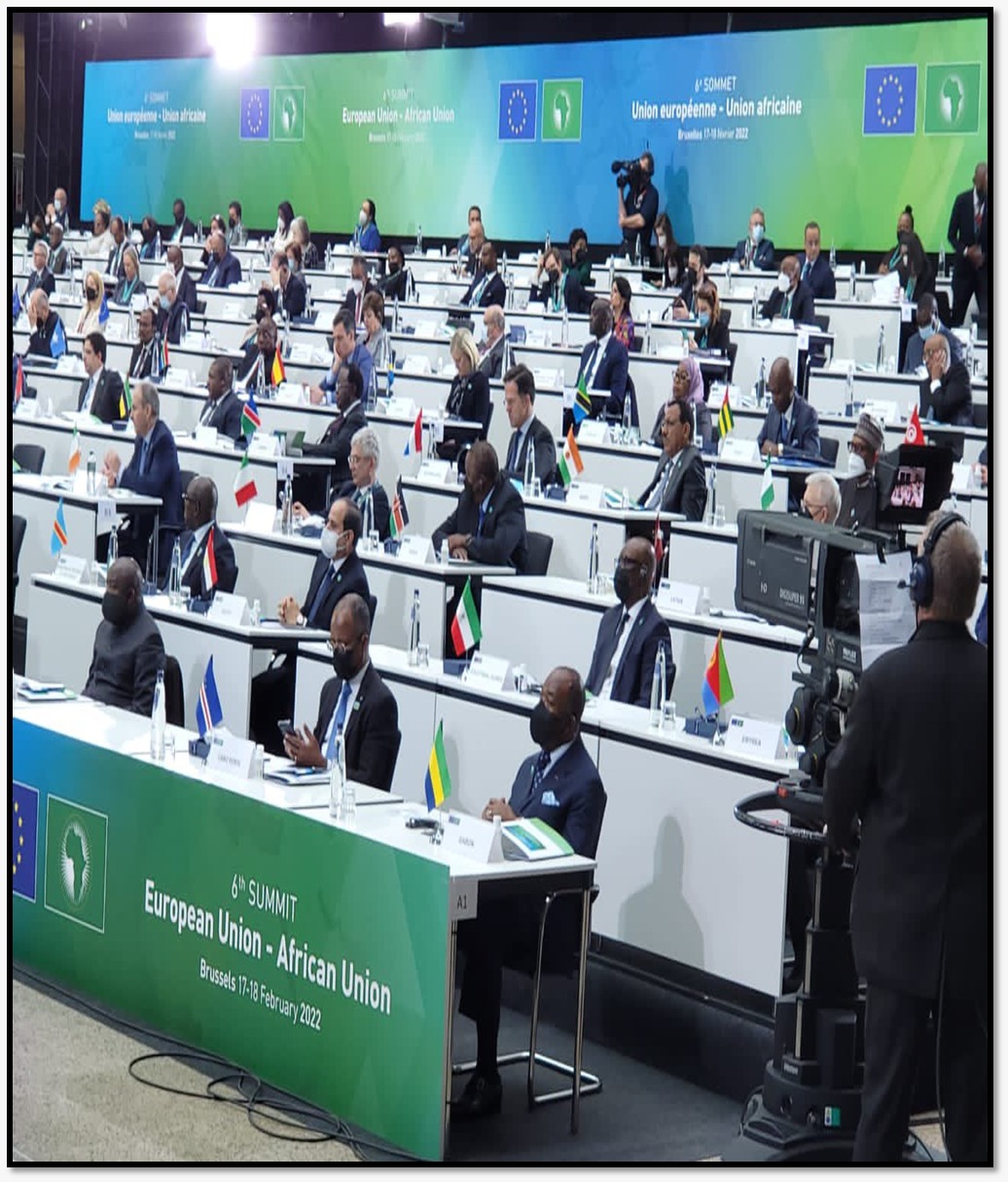 H.E. Samia Suluhu Hassan, President of the United Republic of Tanzania on the fifth row on the right side together with various European Union and African Union leaders attending the 6th European Union-African Union Summit held at the EU Headquarters in Brussels, Belgium on 17th February 2022.
