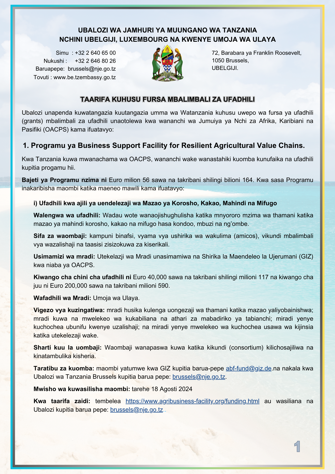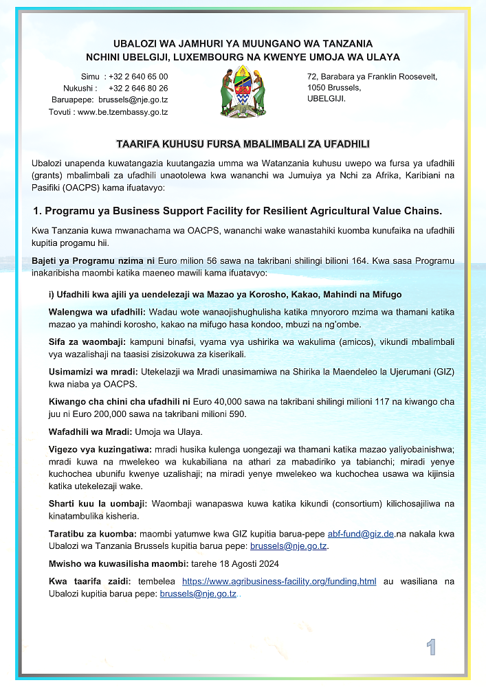 TAARIFA KUHUSU FURSA MBALIMBALI ZA UFADHILI