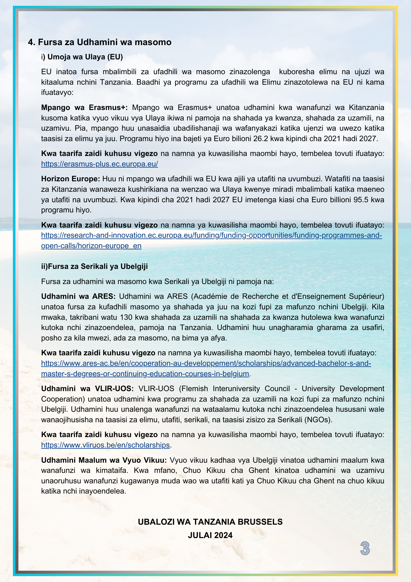 Taarifa Kuhusu Fursa Mbalimbali Za Ufadhili